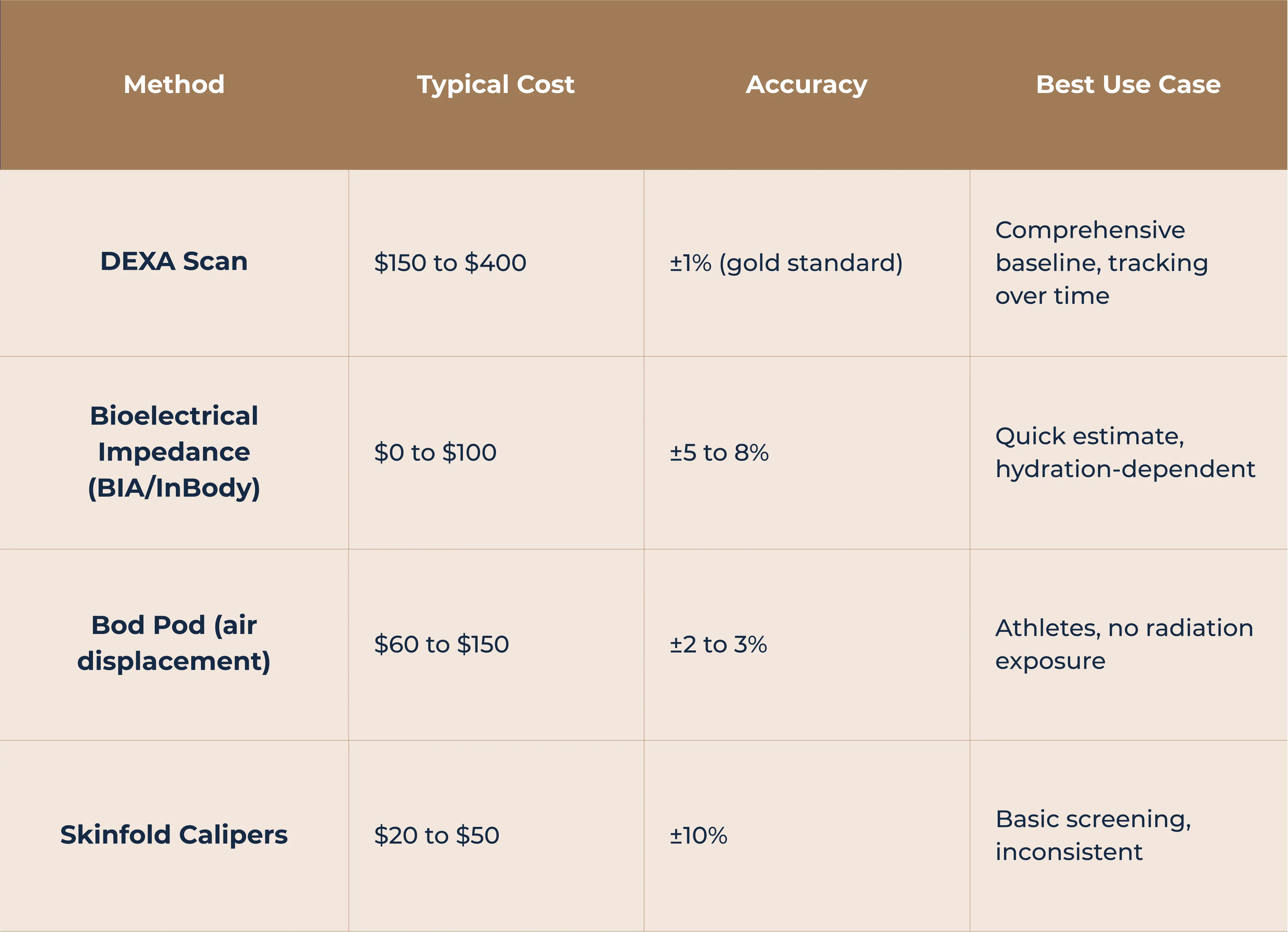 DEXA is not the only option for measuring body fat and lean mass. But it consistently outperforms alternatives in accuracy and detail.